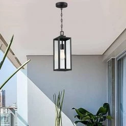 Brand new ๐Ÿ˜‰ Best Sale ๐ŸŽ Alfa 1-Light Matte Black Outdoor Hanging Lantern Pendant Light with Clear Glass by Hukoro โญ ๐Ÿ’ฏ