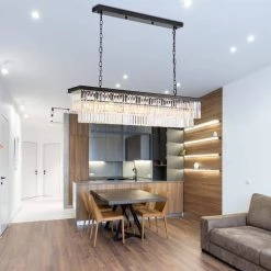 New ๐งจ Outlet ๐ 6-Light 2-Tier Black Rectangular Chandelier Light Fixture Linear Island Lighting With K9 Crystals Adjustable by LamQee ๐งจ ๐
