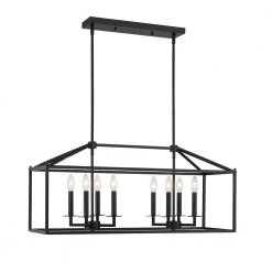 Discount ๐ Flash Sale โญ Alfa 35 in. 8-Light Modern Linear Kitchen Island Rectangle Pendant Chandelier with Matte Black Finish by Hukoro โจ ๐