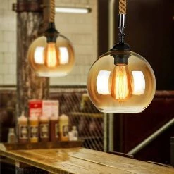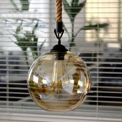 Classic simplicity clear light amber glass body with matte black cap, clear glass shade reveals the bulb and maximizes its light. Create a modern and romantic atmosphere to any residential or commercial decor. You can hang higher or lower with the adjustable hemp rope (Pull through the cord to the desired length and fix it by the set screw).