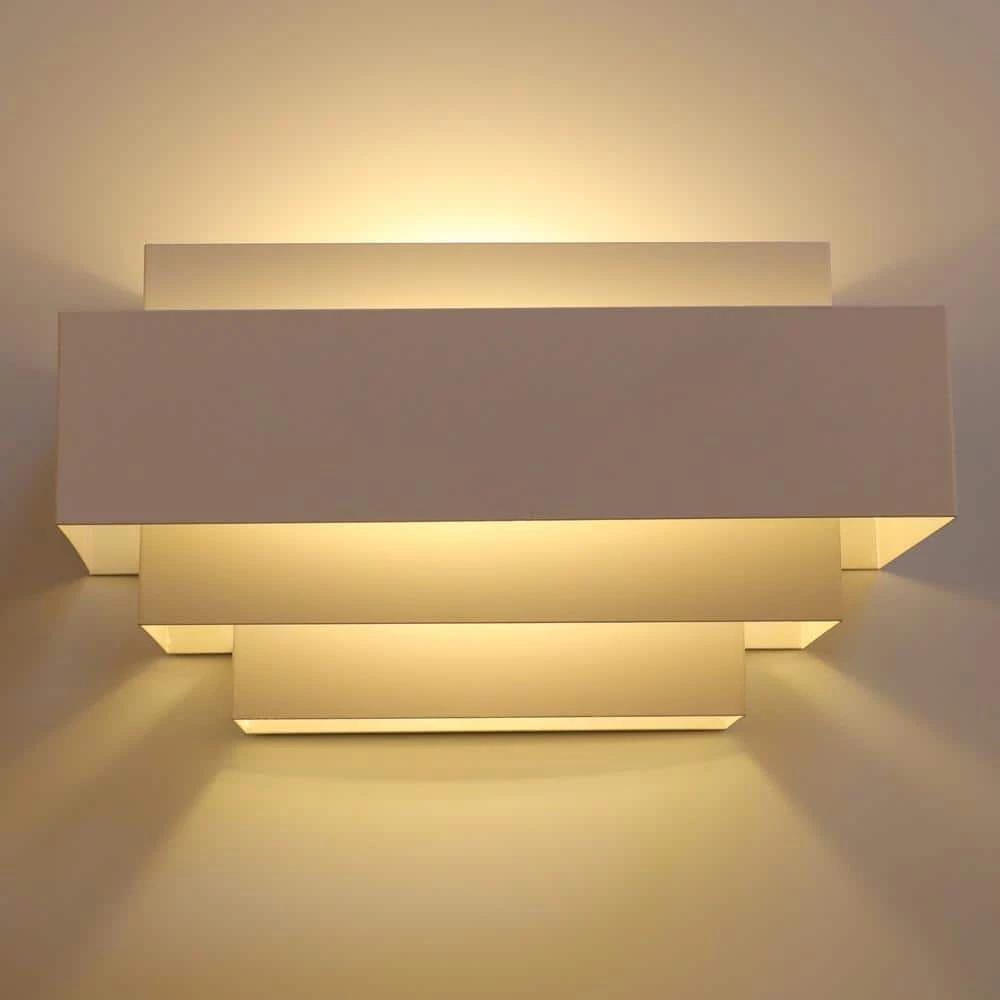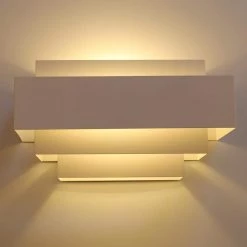 Modern Iron Wall Sconce uses a minimalist overlapping rectangles design, creating a warm and relax atmosphere for your indoor space. The lamp body shell is made of high-quality thick iron and the surface is treated with baking varnish, which can achieve the functions of rust prevention, corrosion prevention and deformation prevention. Simple lines of angles, outlining the beauty of the lamp body. The lamp use high transmittance lamp, up and down projection light shadow, warm light to create a warm room atmosphere. Soft, comfortable and non-flickering intimate warm white lighting, friendly to your eyes and reducing eyes, suitable for entrance passages, corridors, living rooms, dining rooms, bedrooms or kitchens, stairs, lofts, living rooms, bathrooms, study rooms.