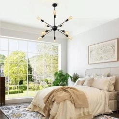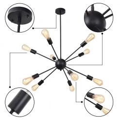 Featuring a striking sputnik silhouette, this modern sputnik chandelier will never be out of fashion. This mid-century ceiling light’s 10 arms stretch from the metallic core for an explosive, dynamic look, bringing space-age style to any space and complimenting room decors from contemporary minimalist to rustic farmhouse. With its trendy look and natural black finish, the chandelier is ideal for use in your living room or dining room.