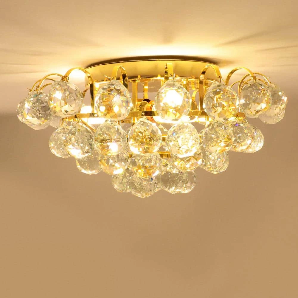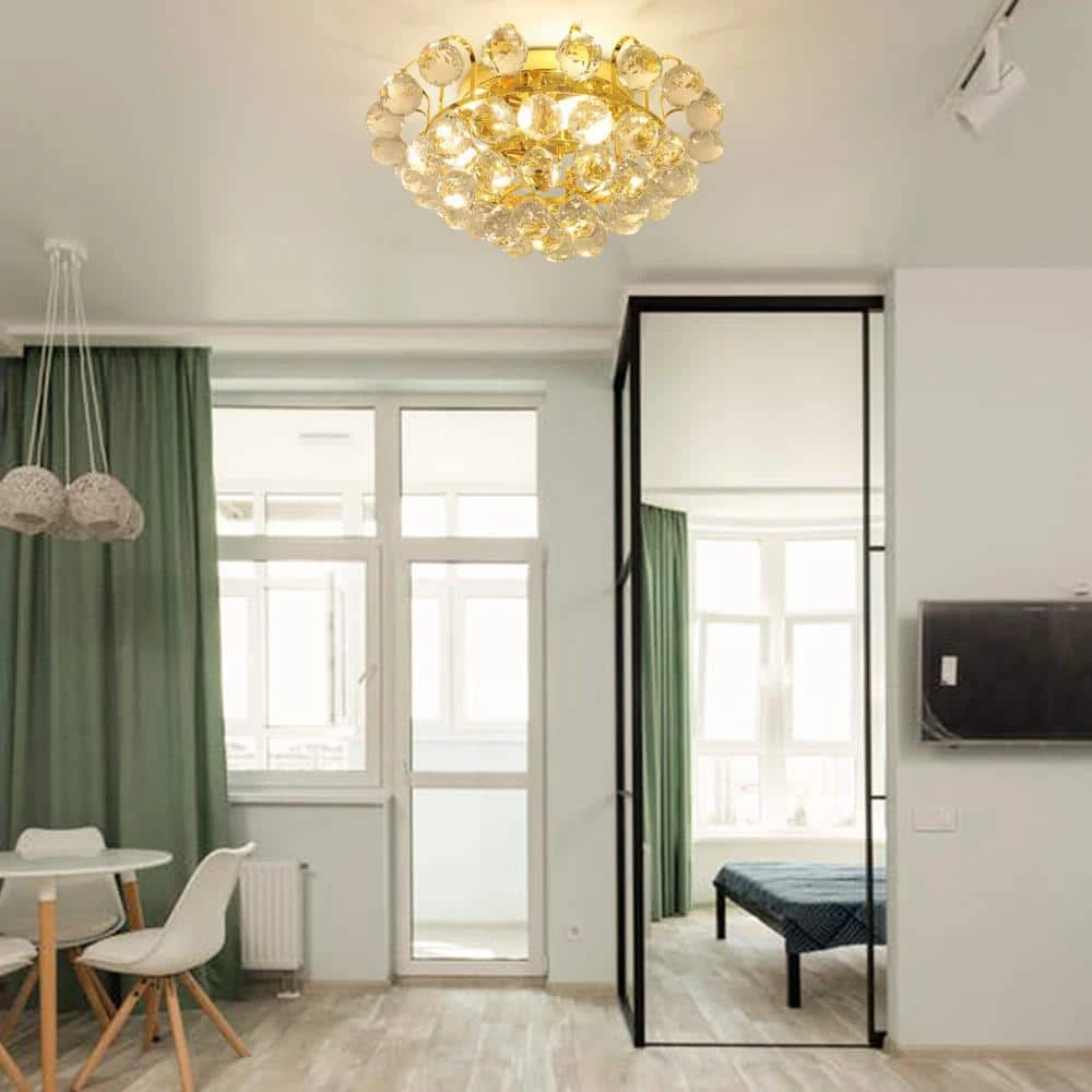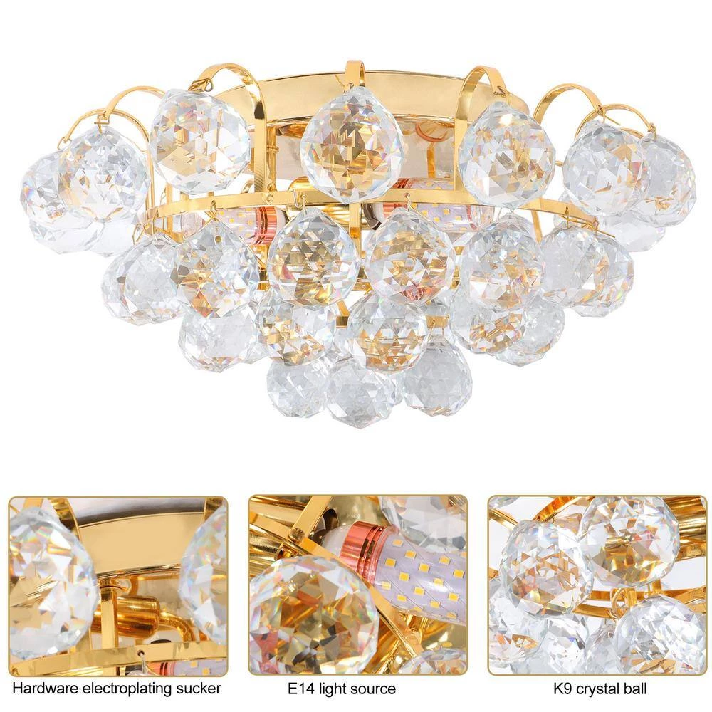 This crystal chandelier is exquisite in workmanship and very fashionable. The high-end lamp body is matched with clear K9 crystal raindrops, which is low-key with luxury. The crystal ceiling light uses high-quality metal as the lamp body is highly resistant to rust and has strong bearing capacity. The clear K9 crystal raindrop is finely cut, when illuminated by sunlight during the day, you can see the beautiful colorful light reflected by the crystal, which makes this chandelier more shining, sturdy and durable, providing you with perfect lighting effects, ideal for Hallway, Bedroom, Kids Room, Kitchen, Restaurant, etc.