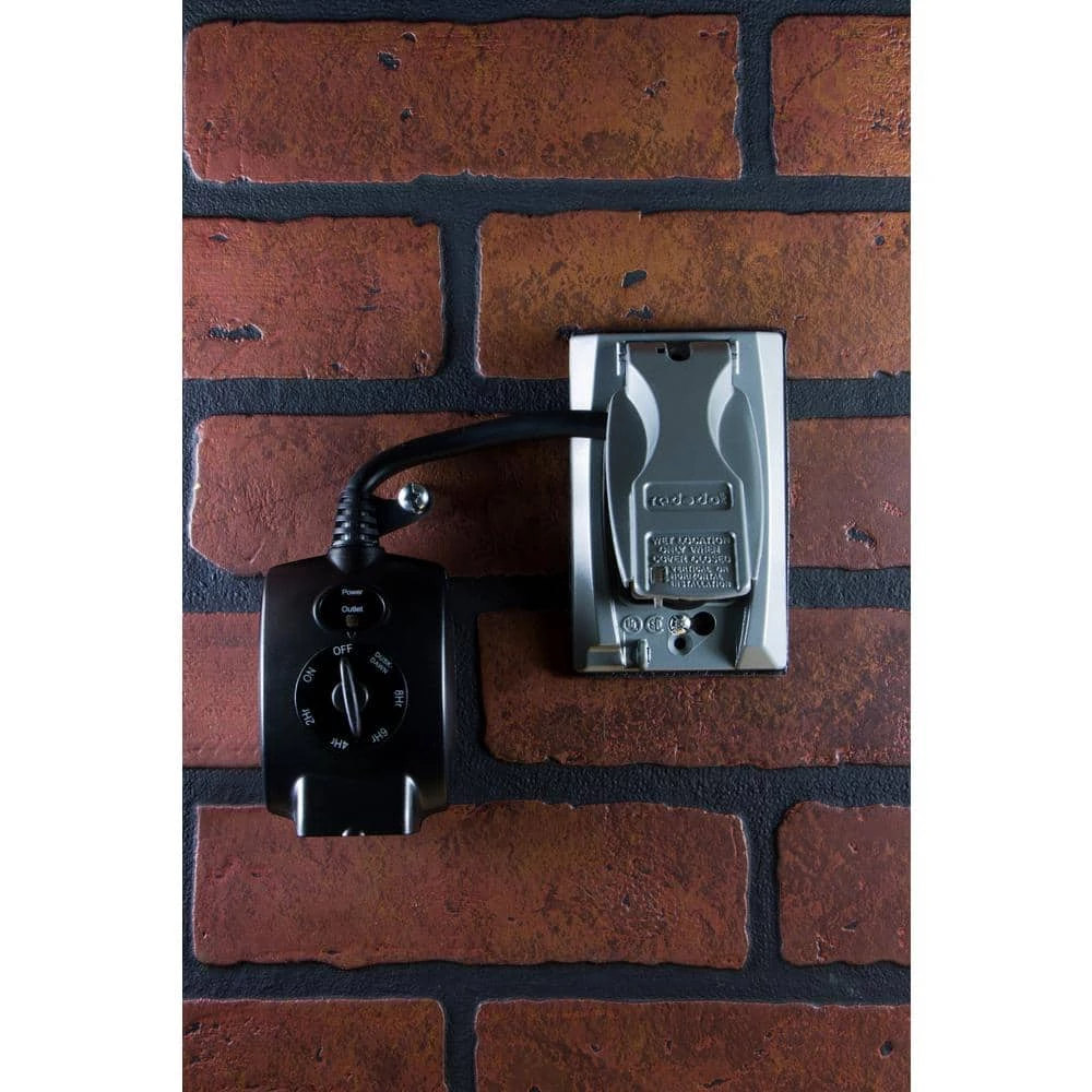 This convenient plug-in mechanical timer from Defiant saves you energy dollars by reducing the operation time of your lamps or other electrical devices. You can program it to come on at dusk and shut off at dawn or you can program it to shut off after 2, 4, 6 or 8-hours of operation. It features a durable, weather-resistant design so that you can use it indoors or outdoors.
