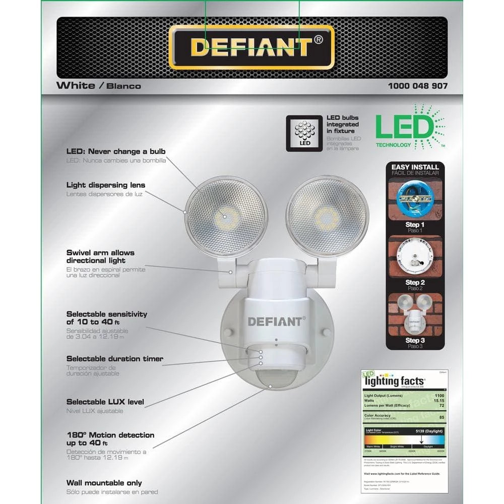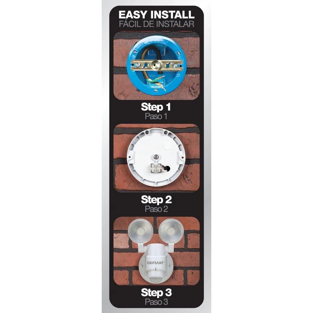 This LED motion flood light provides 1100 Lumens light output for increased safety, security and peace of mind. Never change a bulb with this new LED technology. 3 easy steps to install. For wall mount applications only.