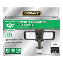 Dependable security protection, ideal for driveways and garages. Projects a bright 2000 Lumens with a 180ยฐ, 70 ft. range of protection. An integral dusk to dawn sensor ensures lights only come on after dark.