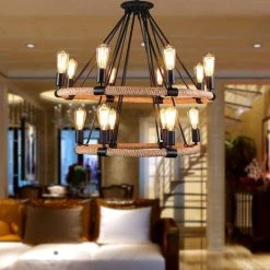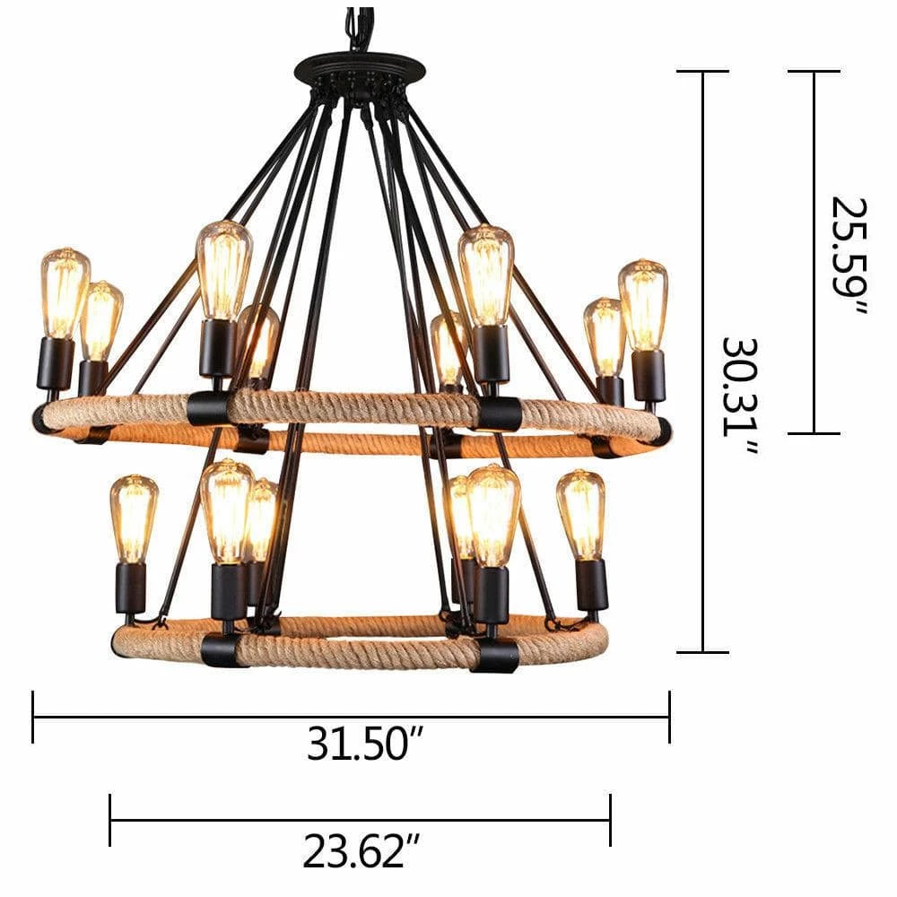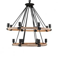 This 6+8 Heads (2 Tiers) Hemp Rope Chandelier with an Elegant Retro Design, creating a retro romantic atmosphere. It is not only lighting, but also for your House Decoration. This handsome design has a minimalist open frame dressed in a rich black finish, and support rods that attach the fixture to a black chain that then attaches to the ceiling.