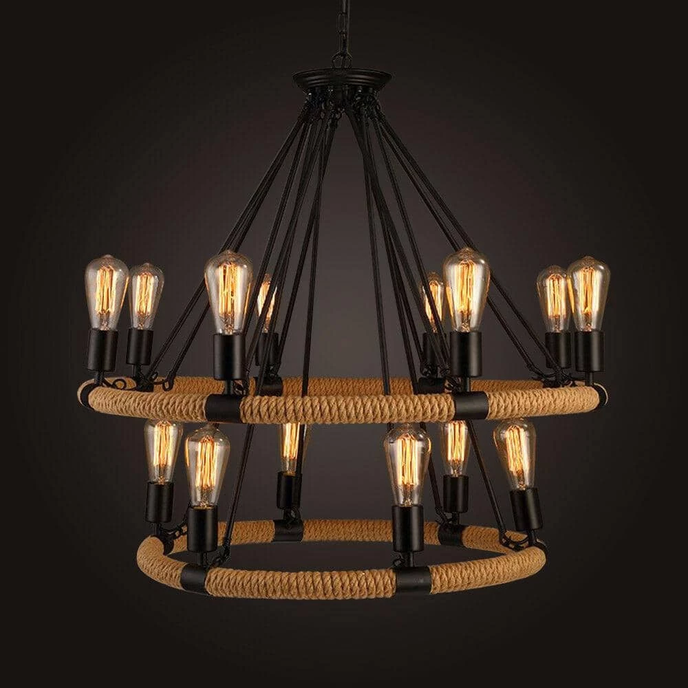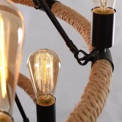 - Industrial style iron chandelier with hemp rope twined decoration, suitable for living room, bedroom, kitchen, coffee shop, hostel, bar, etc.