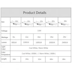- 5-size of this lamp, 16 in./24 in./32 in./40 in./48 in., ideal for using as lighting in bathrooms, bedrooms, over hospital beds, hallways, corridors, study rooms, stairways, workplaces, restaurants, hotel receptions