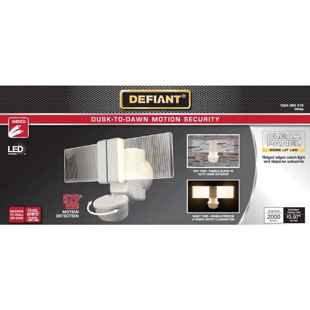 Make your home more secure and stylish with this motion activated outdoor flood light. The ClearView Edgelit Translucent Light Panel Technology feature lets the light fixture blend in to your home exterior. The new technology allows dim accent light to shine from the back of the panels to create a soft wall wash ambient lighting affect. This fixture gives a warm white color temperature of 3000K at a bright 2000 Lumens. The DualBrite feature allows dim accent light from dusk to dawn and full bright when motion is detected.
