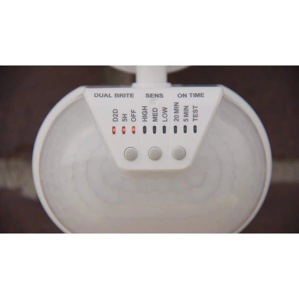 - 270ยฐ motion detection up to 50 ft. range/features LED light sensor indicators for easy adjustments and notifications of functionality