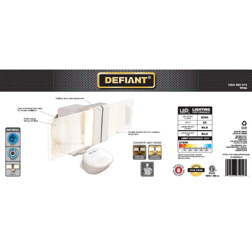 - DualBrite 2-level lighting comes on at a warm white (3000K) temperature which beautifies, protects and save energy by utilizing accent light from dusk to dawn and full light when motion is detected