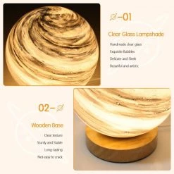 - Moon lamp with the diameter 5 in./6 in. is made of glass plus wood material with 3D technology, environmentally and energy-saving, makes it fall resistant it is about 1 kg per light