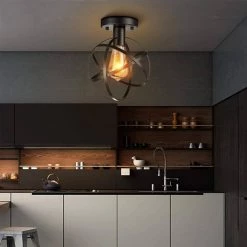 This semi flush mount lamp is made of High-Quality Metal Materials, Strict Processes Ensure the Quality of the Product in Your Hand. The lampshade is made of high-quality wrought iron, with long service life, high-temperature, environmentally friendly, uniform paint surface, delicate and durable. The structure of this light is simple and clear, and the overall color is harmonious. The semi flush mount light is an industrial design with elegant metal shade, geometric aesthetic and exquisite. Define your living space with the vintage look of this exquisite metal Globe light. The retro look will be an eye-catcher in whichever room placed, adding a farmhouse look for kitchen, dining room, barn, amazing choice for your home.