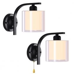 The Wall sconces features a square/circle metal wall mount and glass cylindrical shade that gently diffuses light when the fixture is illuminated, add an elegant touch to your home. The wall lighting design allows for this sconce to be installed in an upwards or downwards position, with or without Pull switch (Choose what you want ). The light can be installed the E26 light source, such as energy-saving lamp, LED bulb or incandescent bulb or other less than 60-Watt bulbs with E26 Base. Perfectly blends with any style, from modern industrial to farmhouse. It can become a perfect decor of lighting accessories in bathroom, living room, bedroom, farmhouse, office, college dorm, bar, hotel.