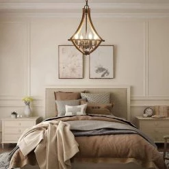 This attractive candle chandelier will be a great conversation piece for your home. Featuring a striking open frame, that vintage empire chandelier has 4 exposed candelabra-inspired sockets waiting to hold 4-light bulbs(not included)for a tender and relaxing glow. Adding a modern rustic accent to space while featuring clean and contemporary design, that rustic chandelier brings a sense of modernity and freshness to any interior decor.
