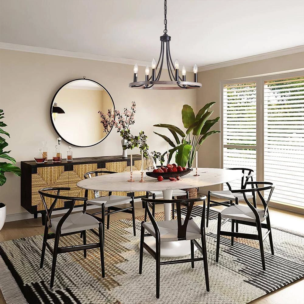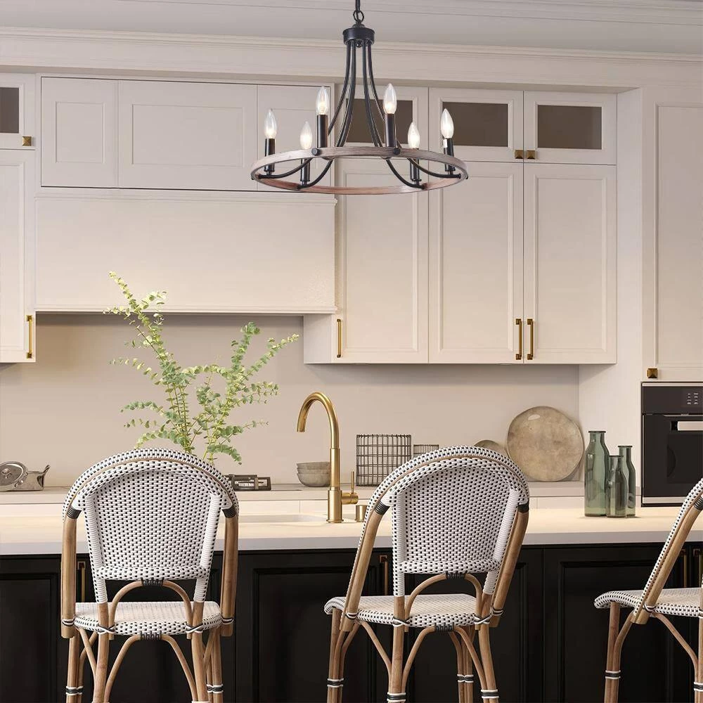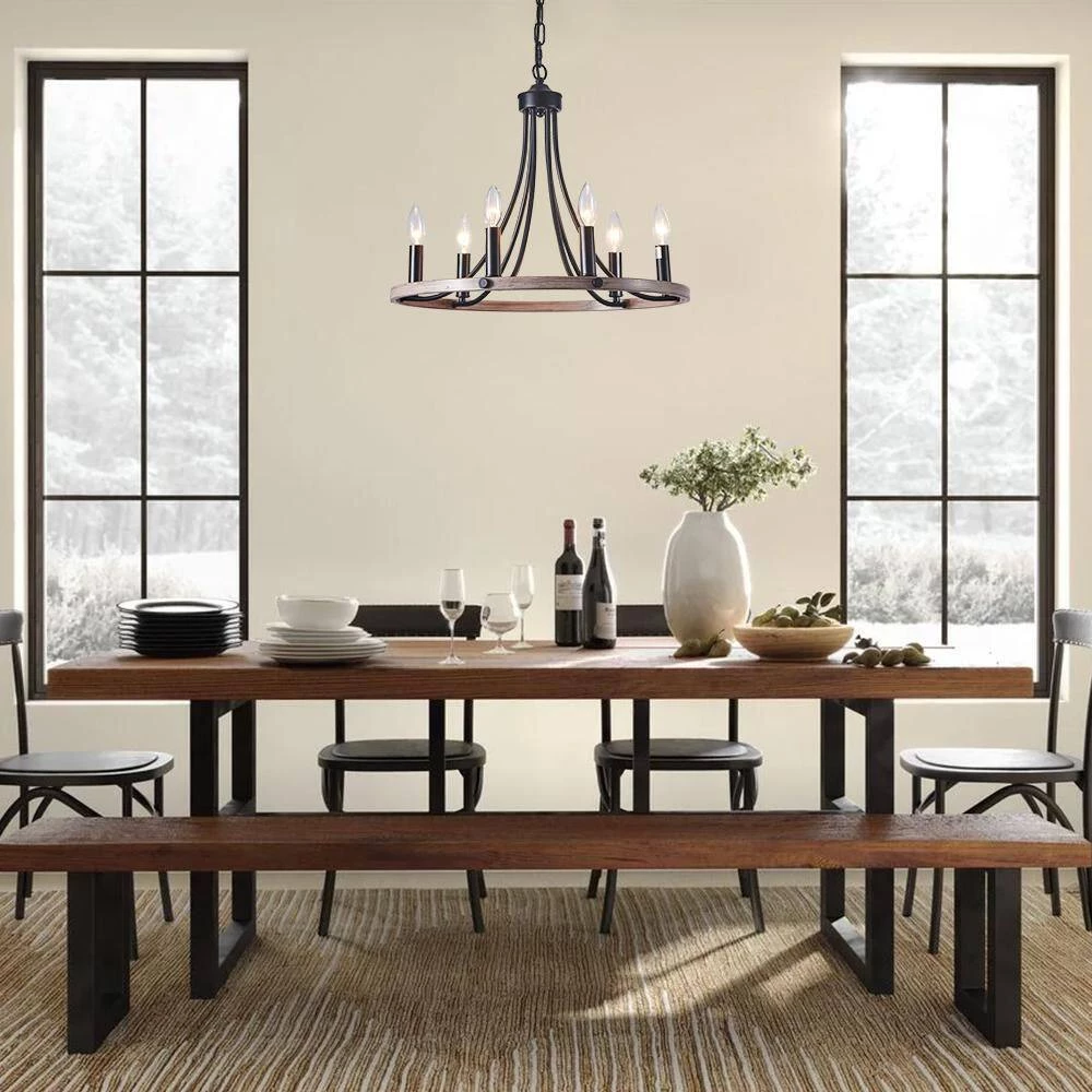 This attractive candle chandelier will be a great conversation piece for your home. Featuring a striking open frame, that vintage empire chandelier has 6 exposed candelabra-inspired sockets waiting to hold 6-light bulbs(not included)for a tender and relaxing glow. Adding a modern rustic accent to space while featuring clean and contemporary design, that rustic chandelier brings a sense of modernity and freshness to any interior decor.
