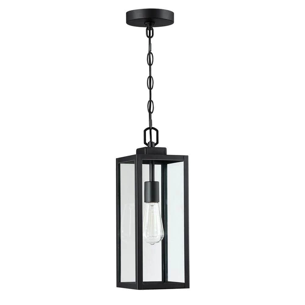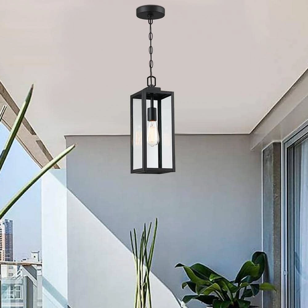 - Outdoor hanging lantern pendant with clear glass shade, and beautiful matte black finish, brings convenience and relaxation to your life on exterior of your home
