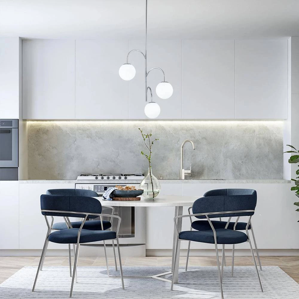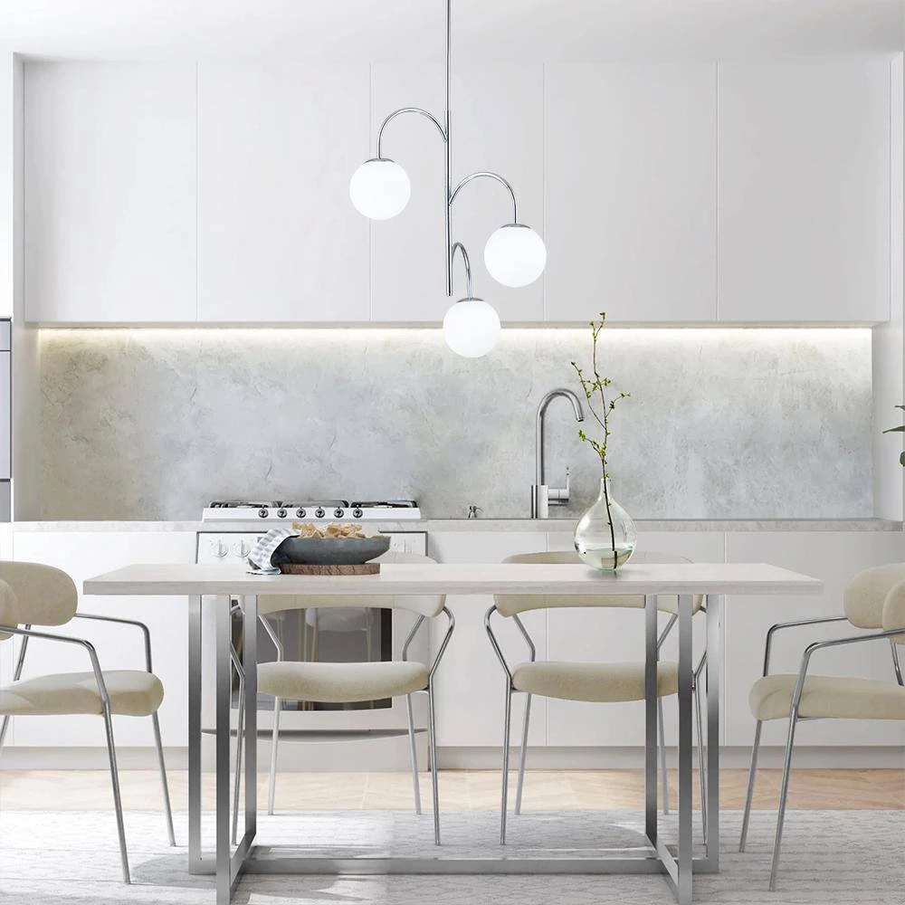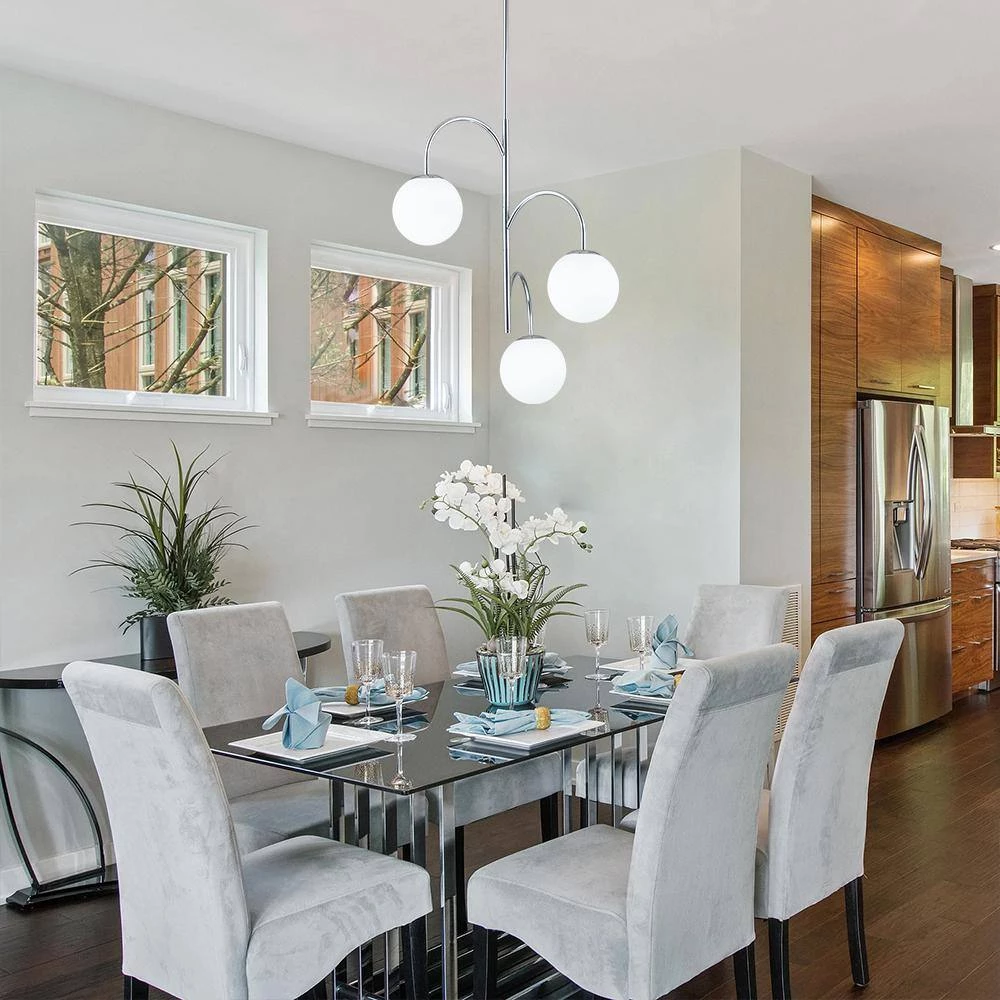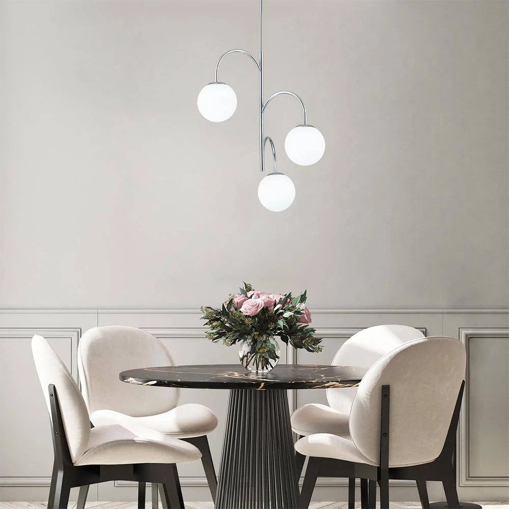 The contemporary 3-Light glass ball chandelier brings a novelty to the fixture, transforming its modern profile from streamlined to dramatic. Pair it with E26 bulbs for an eye-catching look in the dining room, above a kitchen island or in an entryway. The chandelier is also compatible with LED bulbs, ensuring long-lasting and energy-efficient illumination.As a blend of practicality and artistry, it is convenient and adjustable. Its unique allows you to add sleek and this product is suited for a variety of room applications. It is recommended to decorate your living room, bedroom, dining room, kitchen, bathroom, hallway, corridor, office, girl’s room, children’s room, etc. Add a touch of luxury and cast a beautiful shadow throughout the room.