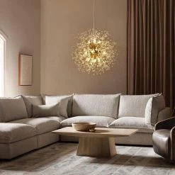 Want to bring amazing elegance to your living room or dining room, this crystal chandelier is a perfect piece for you. Multiple sparkly crystals hang in a sputnik-shaped formation from an adjustable cable, this glass chandelier comes to choose, which works well with any contemporary or mid-century style decoration. Well, this sputnik chandelier not only enhances the look of rooms but also offers plenty of light to space.