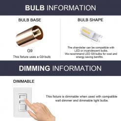 - LED chandelier needs G9 bulbs (not included), the hanging ceiling light can be compatible with LED or incandescent bulbs, we recommend using LED G9 bulbs for cost and energy saving benefits