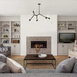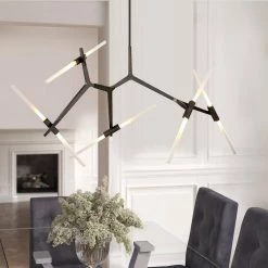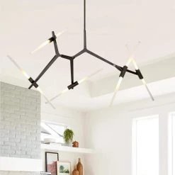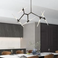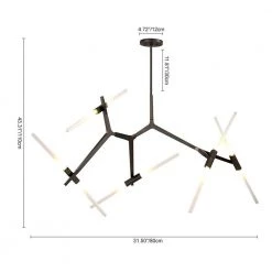 This 10-Light modern black branch asymmetric modern chandelier is a distinctive combination of the modern and asymmetric aesthetic. Featured with sturdy metal, the modern chandelier has a brushed brass or matte black finish. Articulated joints enable to rotate the look into a diversity of ways arranged, making your contemporary interior a signature space, this branch modern brass chandelier is an ideal enhancement to your living room, dining room, or entryway.