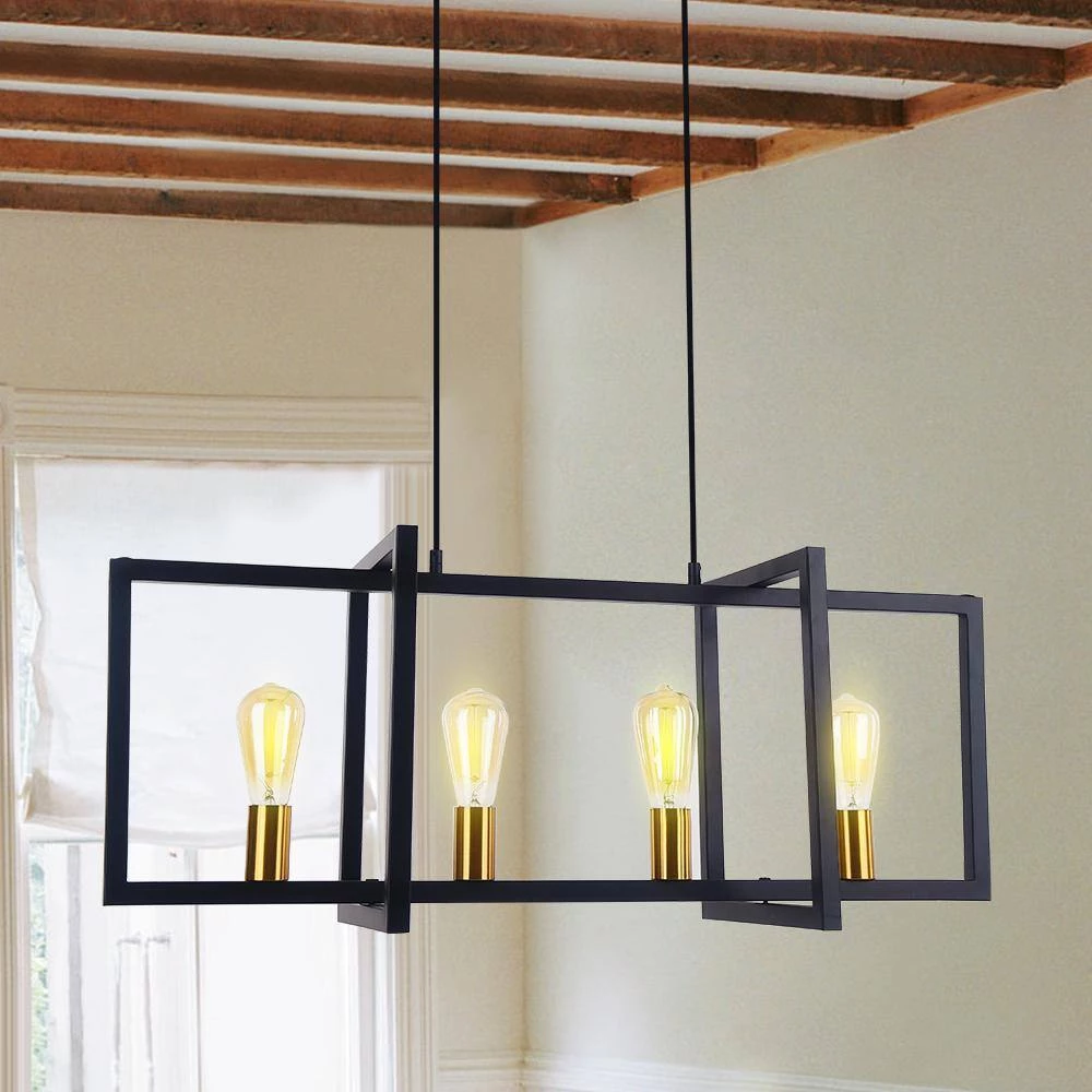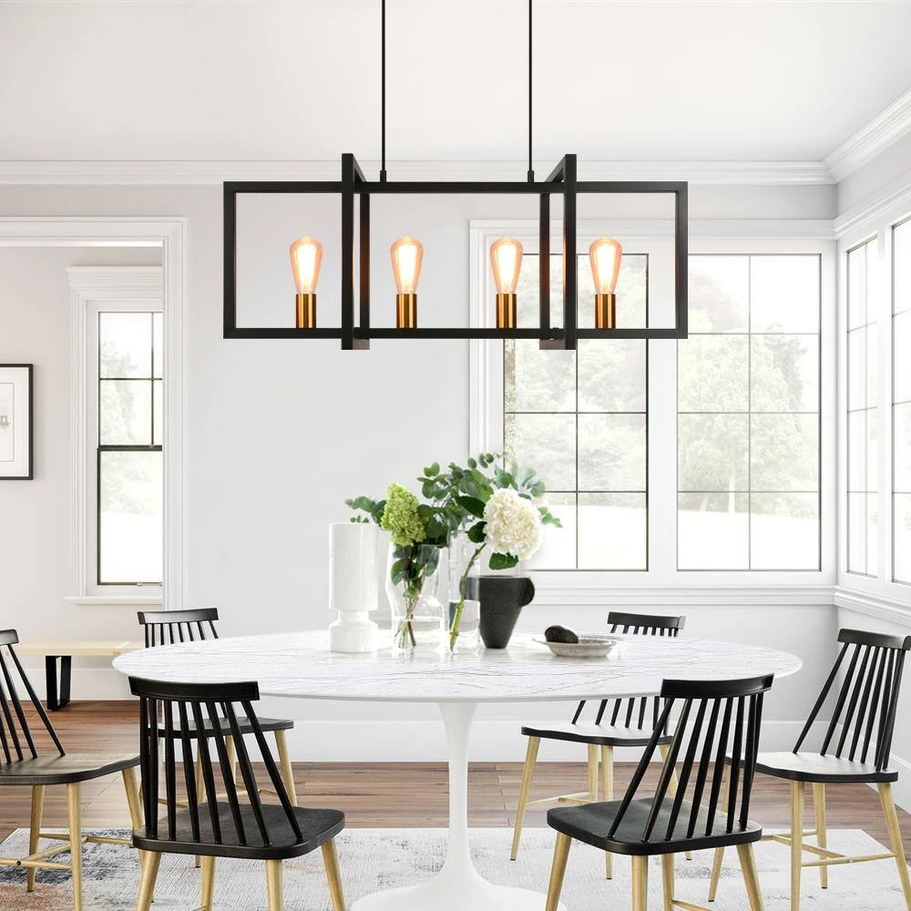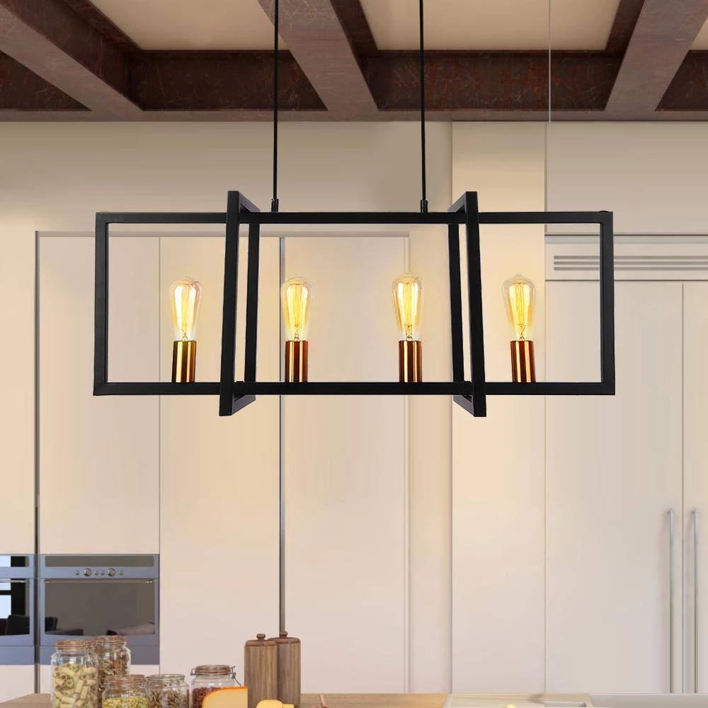 The wrought iron hardware gives it a classic look that blends in today’s design trends. This chandelier is made from steel and built to last, designed for dining areas or kitchen islands, and it can be mounted on a flat ceiling. This chandelier is a perfect example of the classic farmhouse style redesigned for today’s modern home.