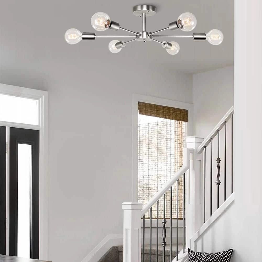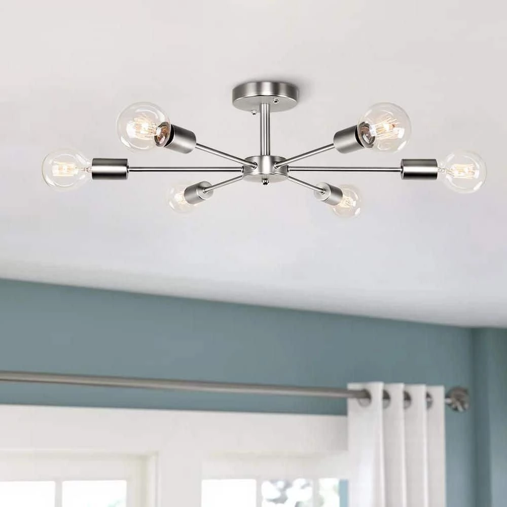 Crafted by excellent designs, this contemporary 6-light sputnik chandelier light fixture is a natural addition to any modern living space. Finishes with the nickel add an updated contemporary look to this versatile sputnik chandelier lighting fixture. Different styles of this modern linear sputnik chandelier lighting enable a choice of diversity when you decide to remodel your space.