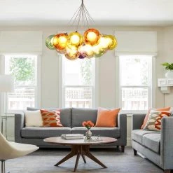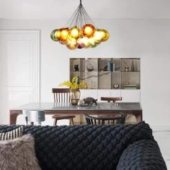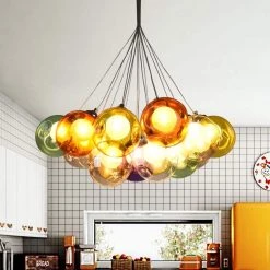 37-Light chandelier with glass globe lampshade and metal decoration. We especially like the scattered arrangement of the earth, which provides abstract attraction. Add G9 bulbs and your space will shine with unexpected beauty. Modern and elegant home accessories design. It is recommended to decorate your living room, bedroom, dining room, kitchen, bathroom, hallway, corridor, office, girl’s room, children’s room, etc. Add a touch of luxury and cast a beautiful shadow throughout the room.