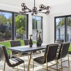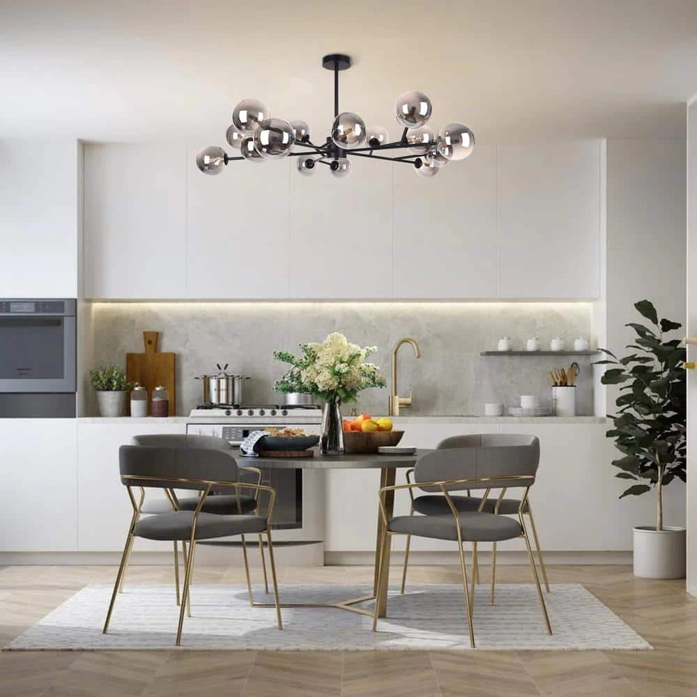 With branching arm design, the 15-Light Sputnik Sphere Linear Chandelier is sure to make a bold statement in a living area in which you can hang it as an abstract work of art. This chandelier creates dispersed light with 15 glass globes in a different direction that greatly broadens your illumination area. This unique chandelier complements a range of interior spaces in a contemporary style. This Sputnik Chandelier makes for an ideal addition to your living room, dining room, bedroom and more.