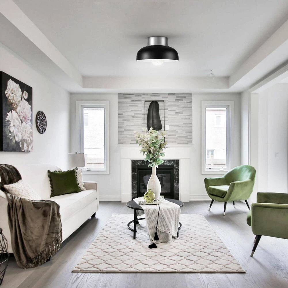 Simple and serene, the open shade design of the RRTYO Semi-Flush Mount Ceiling Light offers an atmosphere of harmony for your home. Acting as a stunning neutral accent color, the metal of the shade compliments any decor providing a super versatile light. Use it as a centerpiece in your living room, foyer or kitchen.