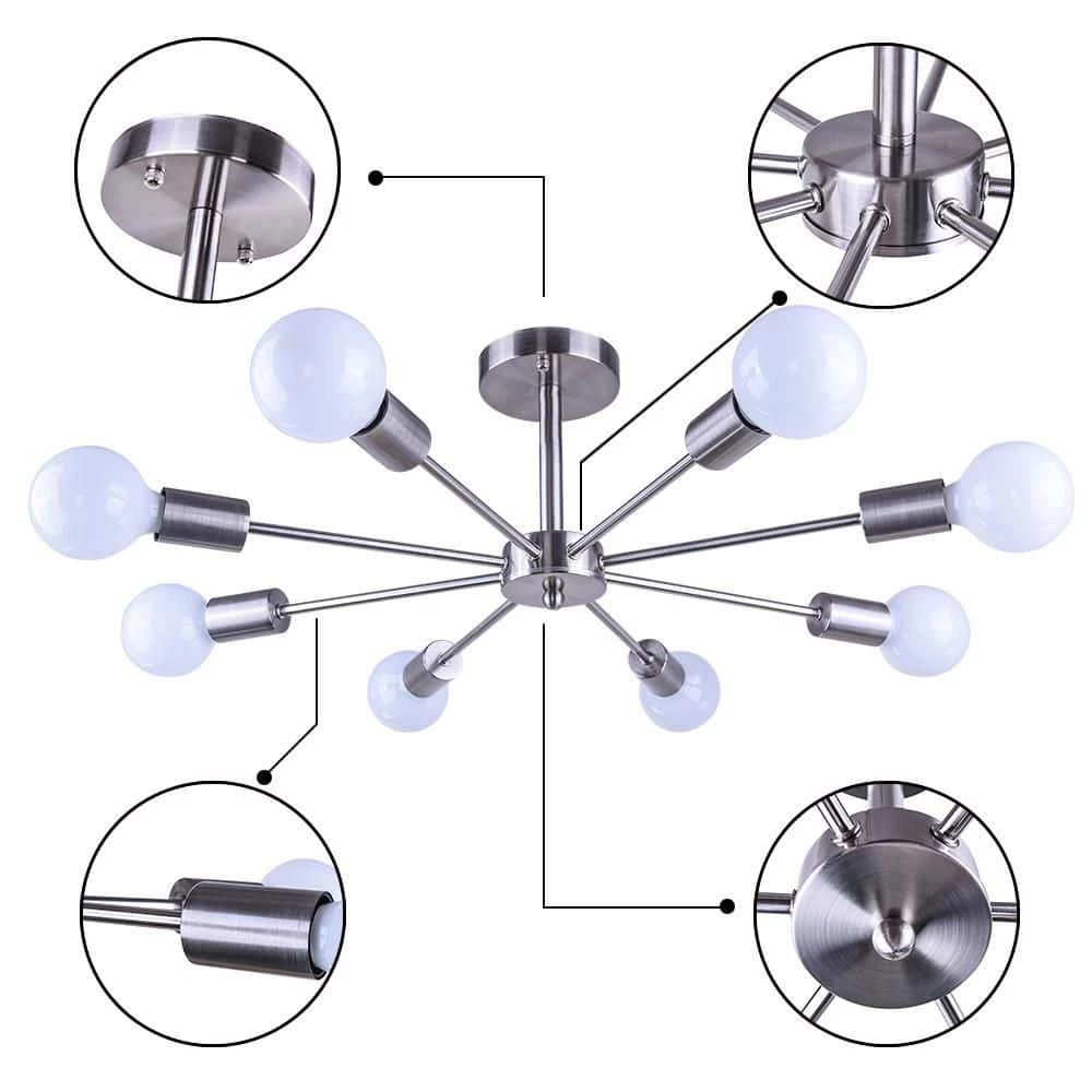 Crafted by excellent designs, this contemporary 8-light sputnik chandelier light fixture is a natural addition to any modern living space. Finishes with the nickel add an updated contemporary look to this versatile sputnik chandelier lighting fixture. Different styles of this modern linear sputnik chandelier lighting enable a choice of diversity when you decide to remodel your space.