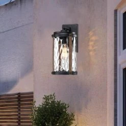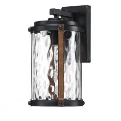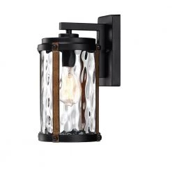 - Outdoor wall lantern sconce with water glass shade, and beautiful matte black and barnwood accents, bring convenience and relaxation to your life on exterior of your home