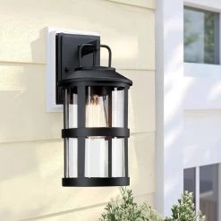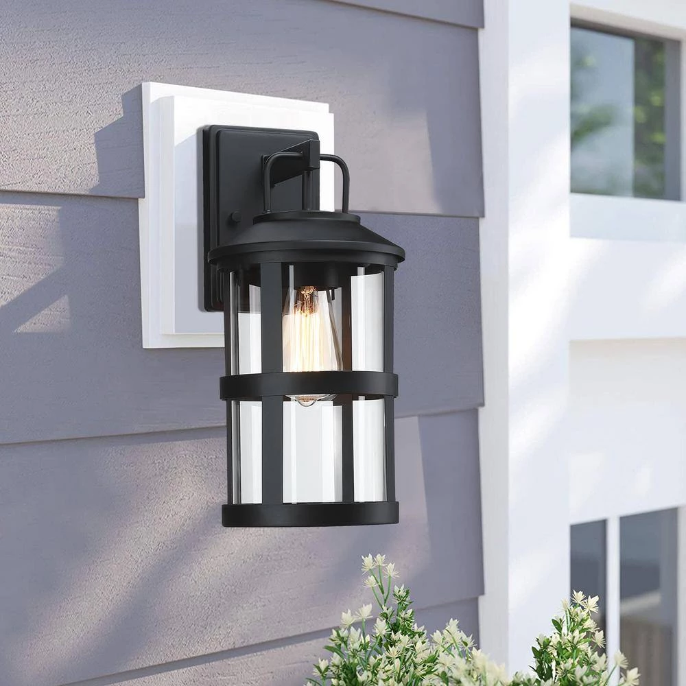- Outdoor wall lantern sconce with clear glass shade, and beautiful matte black finish, bring convenience and relaxation to your life on exterior of your home