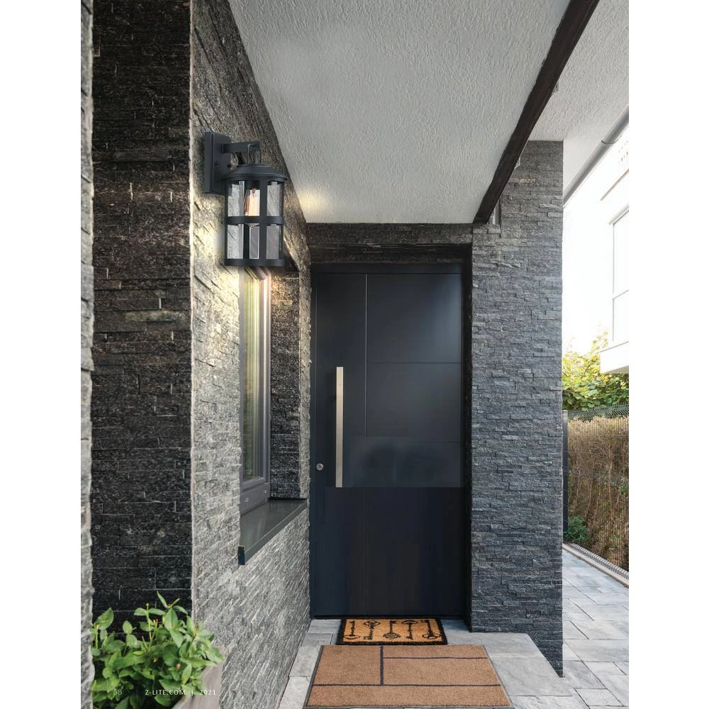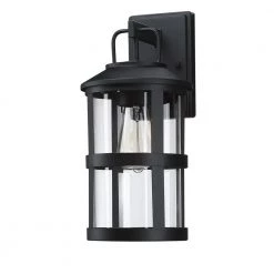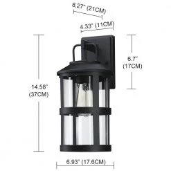 The fully crafted wall lantern with matte black finish, clear glass and open-caged design adds a touch of modern refined vintage ambiance to the exterior of your home. Its also workable for dry, or even damp environments. This beautiful wall lantern is totally safe to use under covered porch, patio, or veranda. The 1-light wall lantern accommodates for 1 medium-base bulb of up to 60-Watt (bulb not included) that disperse ambient light to warm up your ourtdoor.