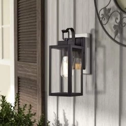 - Outdoor wall lantern sconce with clear glass shade, and beautiful matte black finish, brings convenience and relaxation to your life on exterior of your home