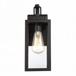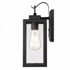 The fully crafted wall lantern with matte black finish and clear glass adds a sense of modern-inspired flair to the exterior of your home. Its also workable for dry, or even damp environments. This beautiful wall lantern is totally safe to use under covered porch, patio, or veranda . The 1-light wall lantern accommodates for 1 medium-base bulb of up to 60-Watt (bulb not included) that disperse ambient light to warm up the exterior of your home.