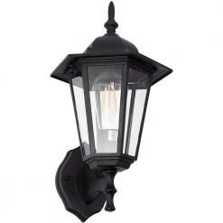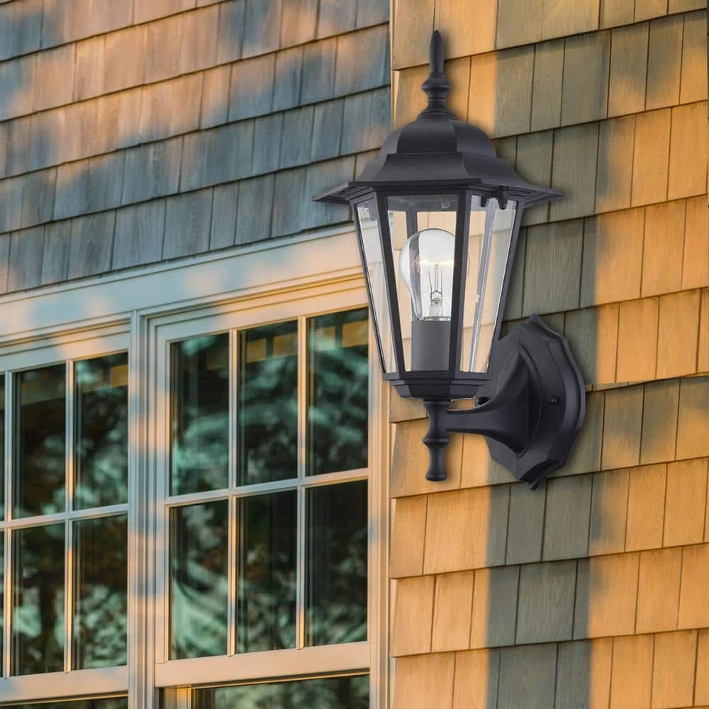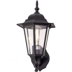 This fixture is a 1-light outdoor wall light with a weather-resistant finish in matte black and a beautiful clear glass shade. With its clear glass lantern looks, this wall lantern showcases a classic silhouette and a decorative finial on top. It also features an ornate backplate to the fixture’s base, so you can place this lantern anywhere covered outdoors. With 1 incandescent bulb of up to 60-Watt sits inside (Bulbs are not included) that disperse ambient light to warm up the exterior of your home.
