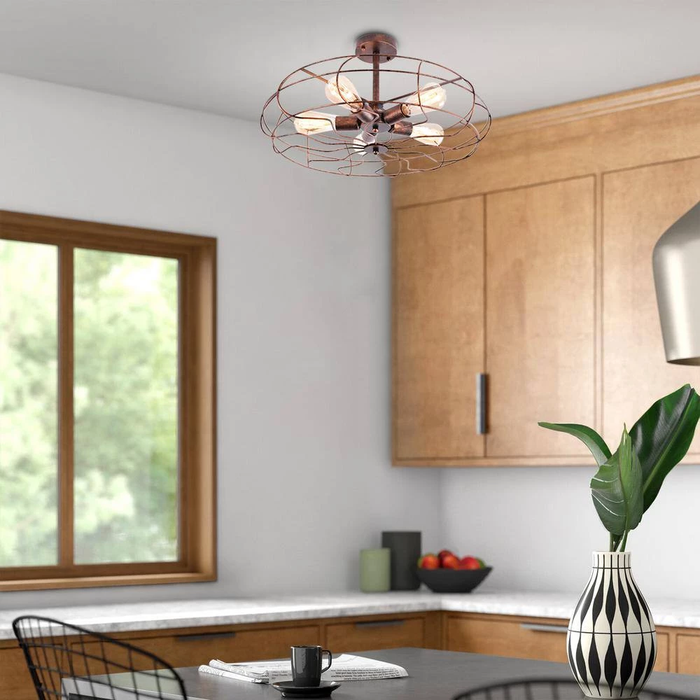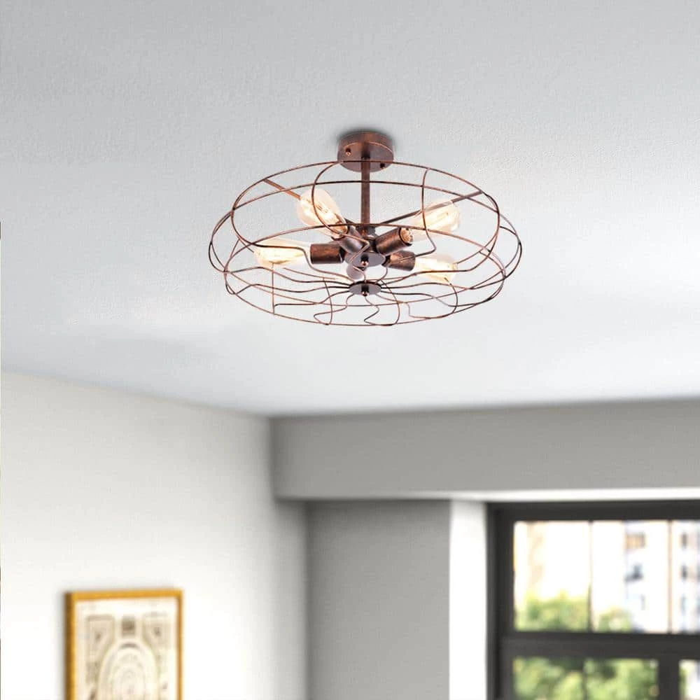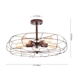 Crafted from high-quality metal with a chic rusty finish, this semi-flush mount chandelier features a caged geometric frame that is similar to the ceiling fan structure. Striking a balance between rustic and modern style, that semi-flush mount ceiling light is a perfect fit for any contemporary or farmhouse style decor. Adding a farmhouse rustic charm while gives the rooms a modern flair too, this semi-flush mount ceiling light is suitable for bedrooms, hallways, entryways, corridors or living rooms.