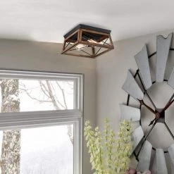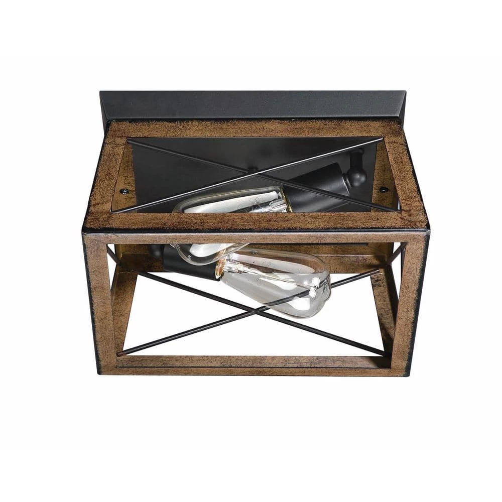 - Charming 2-light flush mount with matte black and barnwood accents brings convenience and relaxation to your life