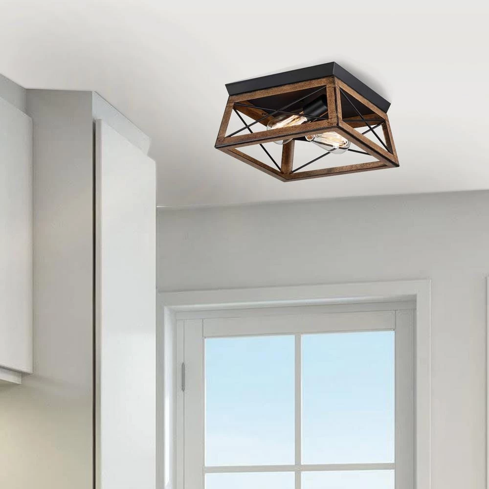 - Farmhouse style: the 2-light flush mount with matte black and barnwood accents matchs to any room in farmhouse and rustic style, moreover, the fixture pairs well with other fixtures and home accents that feature wood rustic elements