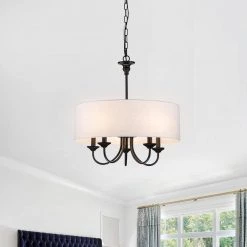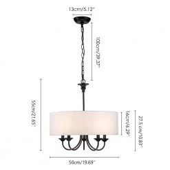 - Black lamp body plus white lampshade chandelier with one 100 cm iron chain