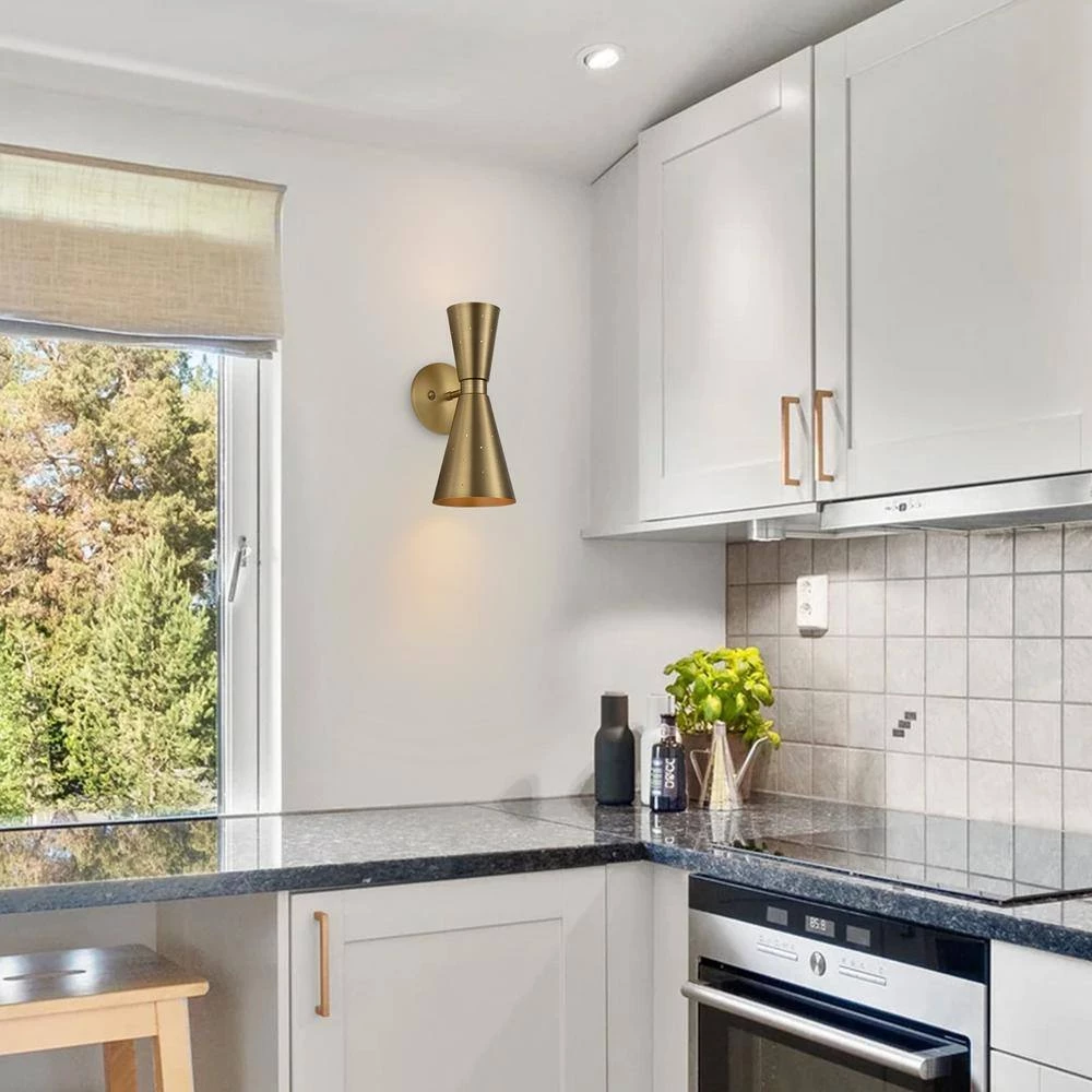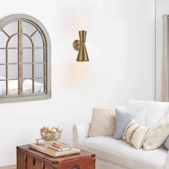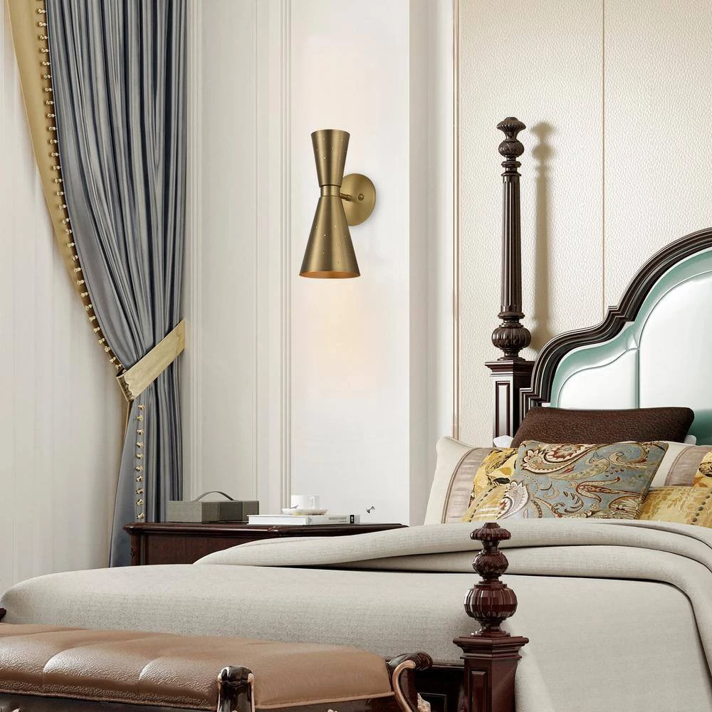 Searching for something special to spruce up the master suite. Switch out your nightstand lamp for this sconce on the wall above. Not only does it lend a fashion-forward feel to your ensemble, but it also frees up space for displaying accents and keeping nighttime essentials on hand.