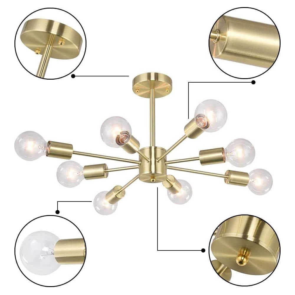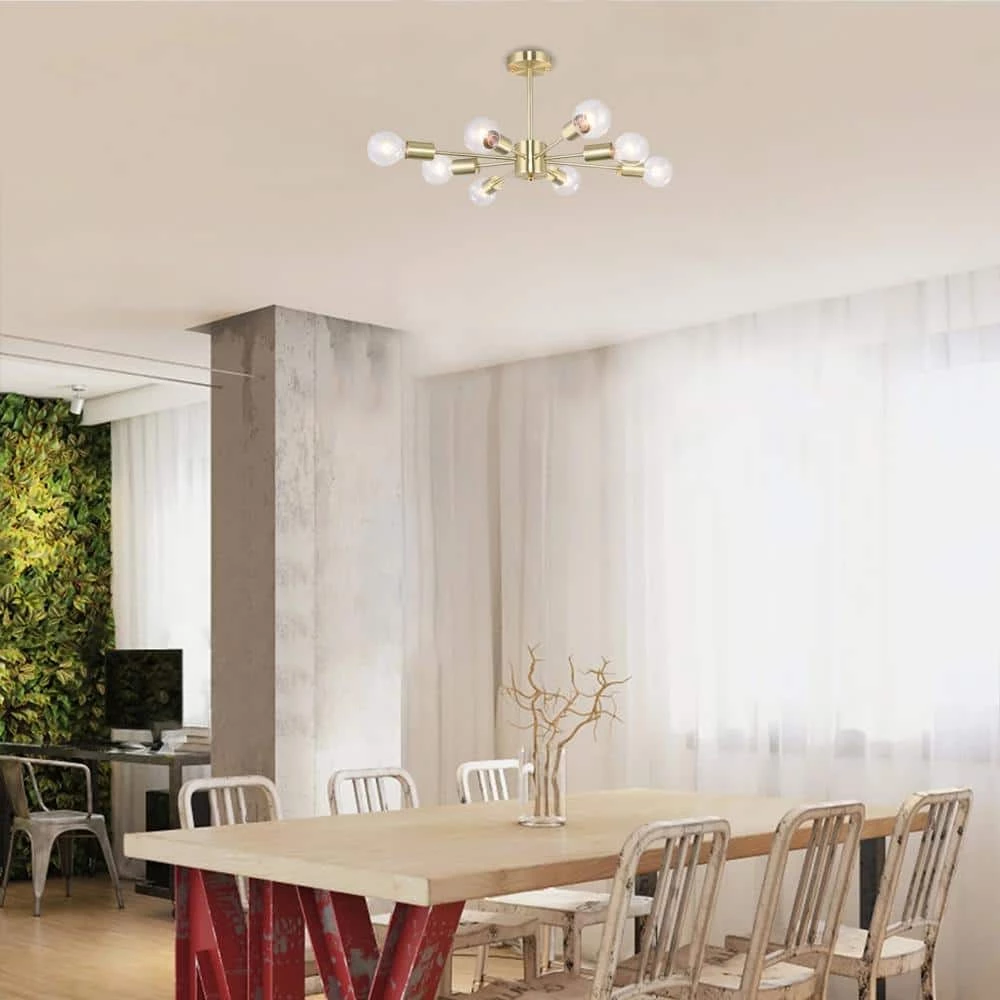 Crafted by excellent designs, this contemporary 8-light sputnik chandelier light fixture is a natural addition to any modern living space. Finishes with the gold add an updated contemporary look to this versatile sputnik chandelier lighting fixture. Different styles of this modern linear sputnik chandelier lighting enable a choice of diversity when you decide to remodel your space.