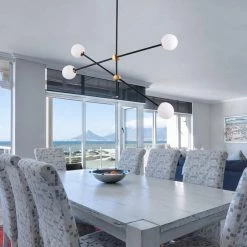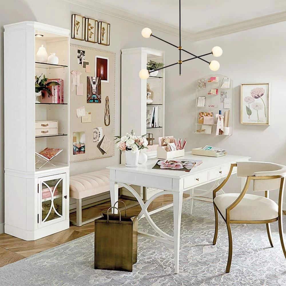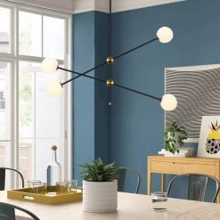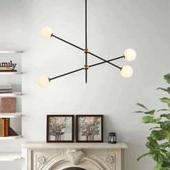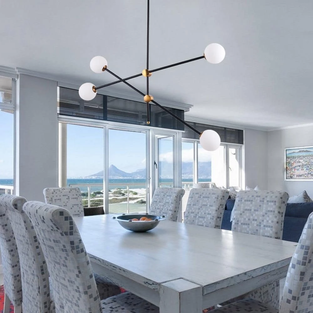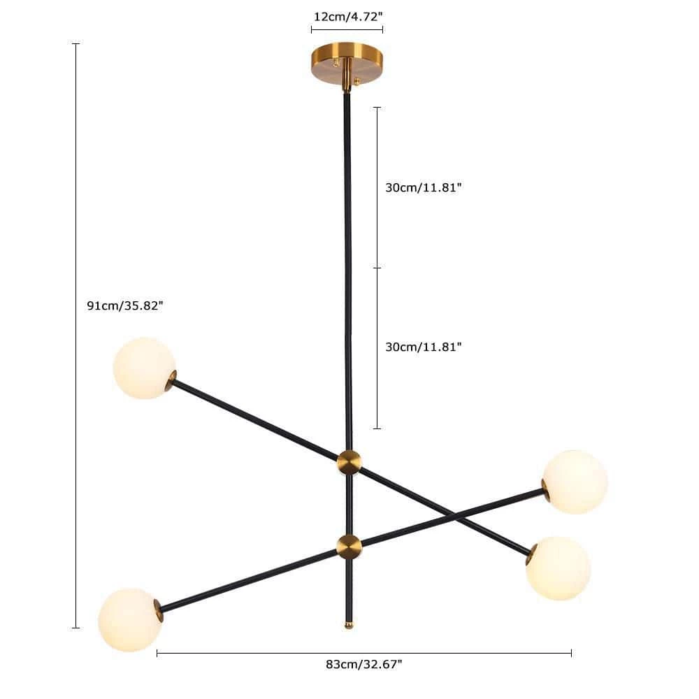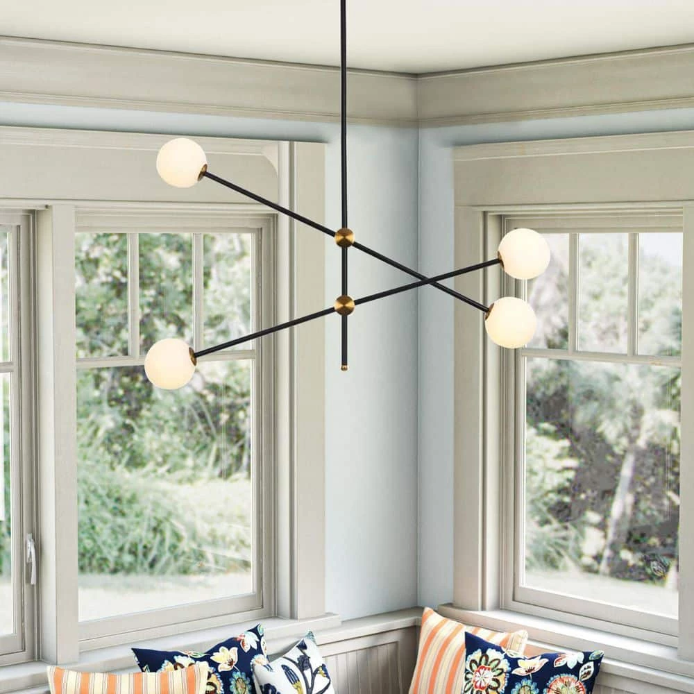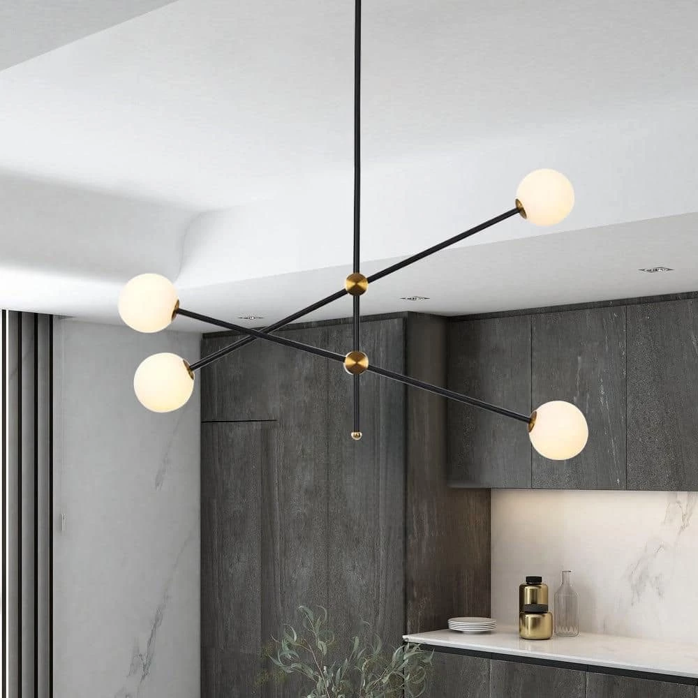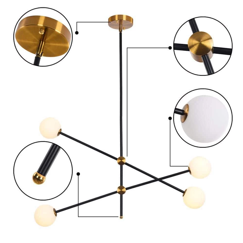 This pendant is arranged with black rods, the white frosted glass provides a stunning yet minimalistic look, the creativity of this series adds a unique detail to any space. Illuminate your living space with this lamp. Create a wonderful style fortune with pendant light with 4-glass globes brightening your space. The Angle can be adjusted. This chandelier needs 4 G9 light bulbs (not included).